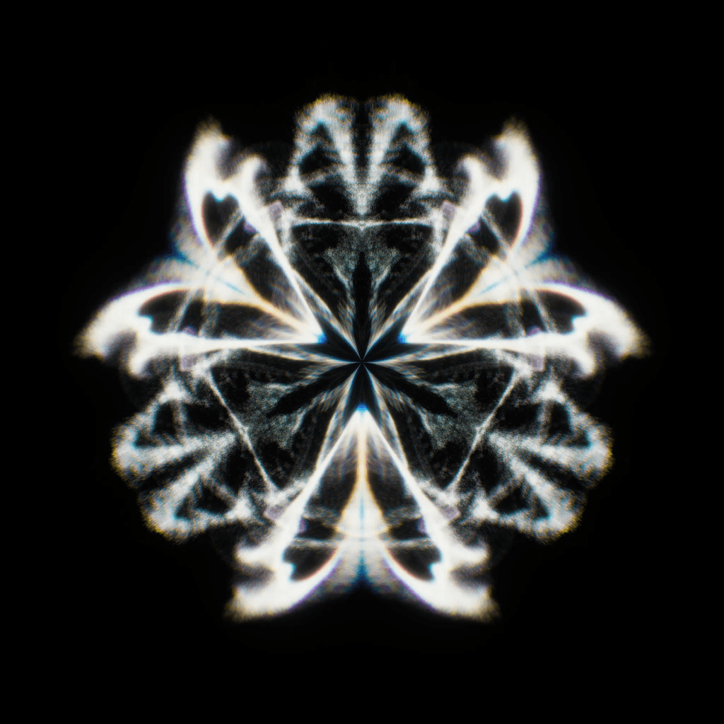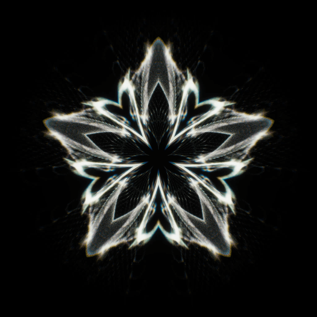 《弦》是用算法模拟微粒受振幅影响而产生各种形态的程序,它源于艺术家对物理学中的“弦论”,“量子世界”,以及宗教中“曼陀罗”的融合性的想象;利用计算机图形学的算法,表现微粒在不断的诞生和消散的过程中,因不同振幅的影响,而构成的无尽形态。在这一过程中,艺术家对其进行了一种切片式的记录,每次记录产生的同时也会生成其唯一的序列码作为它的独特的标识。通过这种方式,艺术家试图表现一种微小生命集合而成的具有艺术性和庄严性的“实在”,一种形态万千,周而复始,生生不息的衍生过程。